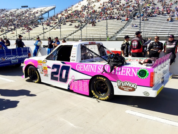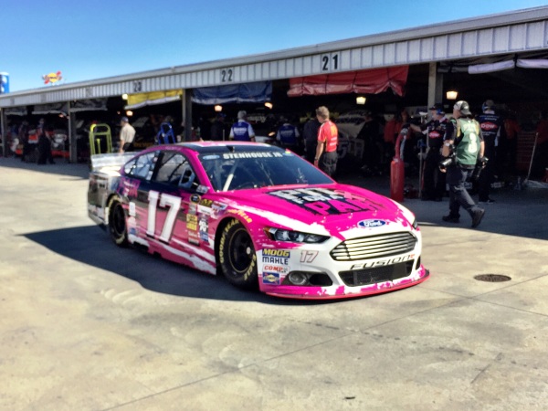 Professional sports leagues around the world have “Gone Pink” in honor of breast cancer awareness month and NASCAR is no different. The pink theme is sprinkled all around Martinsville Speedway for today’s Goody’s Headache Relief Shot 200.