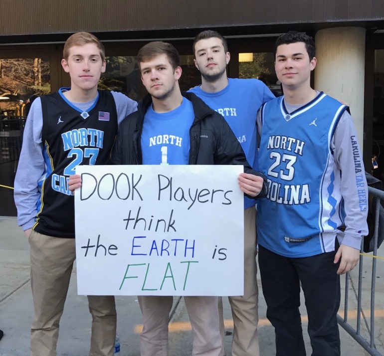 College GameDay was at UNC ahead of the 10th ranked Tar Heels’ matchup against 14th ranked Virginia and there was no limitation on who the Chapel Hill students trolled, including former Duke player Kyrie Irving who recently admitted he thinks the world is flat.