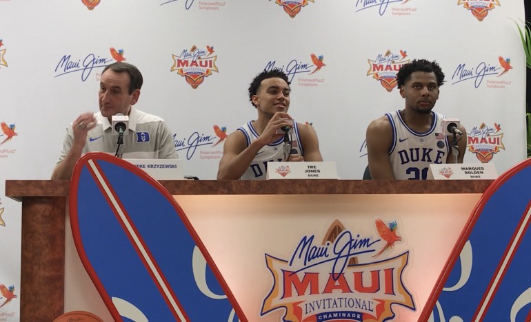 College Hoops Duke vs Auburn Maui Invitational Post Game Press Conference (Video) Duke defeated Auburn 78-72 to advance to their 6th Maui Invitational Championship. Ā Here’s what the team had to say after the contest. Share This Previous ArticleMarques Marvels In Maui Next ArticleDuke vs Gonzaga Maui Invitational Post Game Press Conference (Video) November 21, 2018