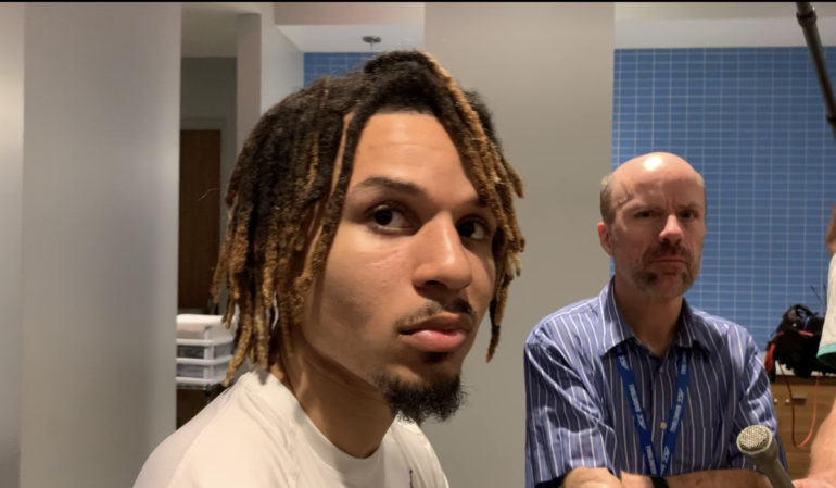 College Hoops Postgame Blitz: UNC vs Notre Dame AKA The Cole Anthony Show (Video) Players discuss Cole Anthony’s 34 point performance in Tar Heels’ 76-65 win over Notre Dame. Share This Previous ArticleFull Roy Williams UNC vs Notre Dame Postgame Press Conference (Video) Next ArticleDefense: New Game Same Song for Blue Devils November 7, 2019
