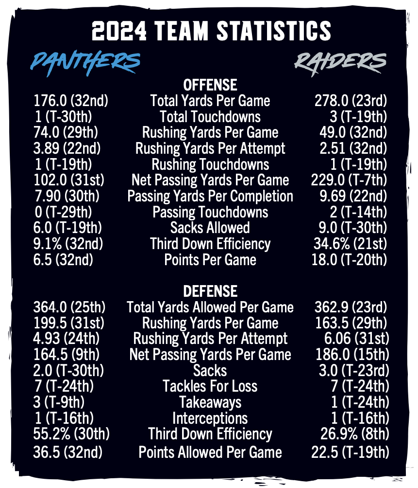 Last Regular Season Game: 9/13/20 | Carolina 30 vs. Las Vegas 34