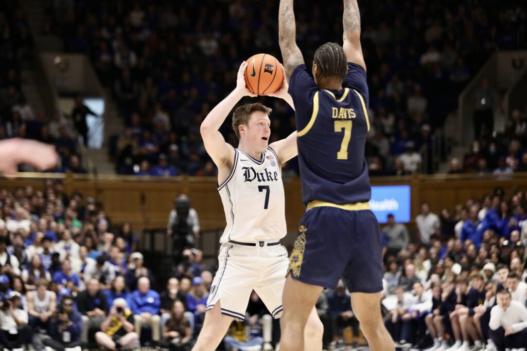 DURHAM, N.C. – Cooper Flagg had a career-high 42 points and seven assists, breaking Duke’s single-game scoring record for a freshman to lead the Blue Devils to a 86-78 win over Notre Dame Saturday afternoon. No. 4 Duke moves to 14-2 on the season.