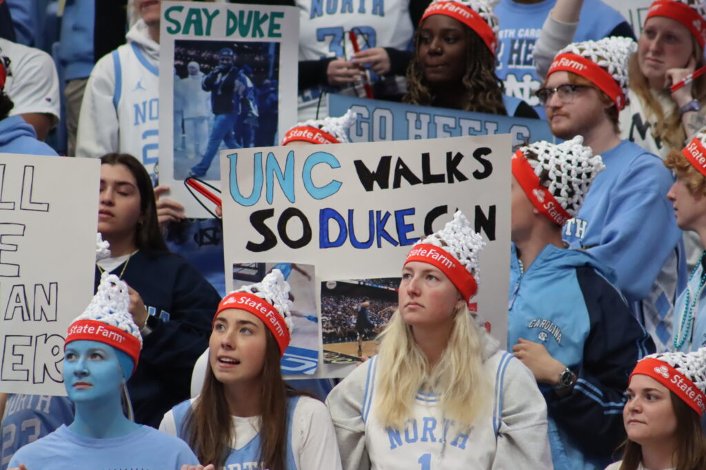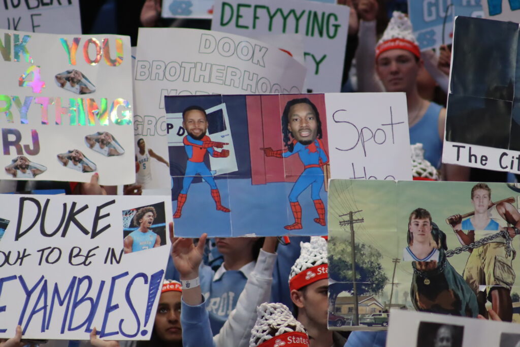 College Gameday visited Chapel Hill ahead of the blockbuster, season-finale matchup between Duke and UNC. Tar Heel fans showed up in mass at the Dean Dome toting signs that took jabs at their Tobacco Road rival.