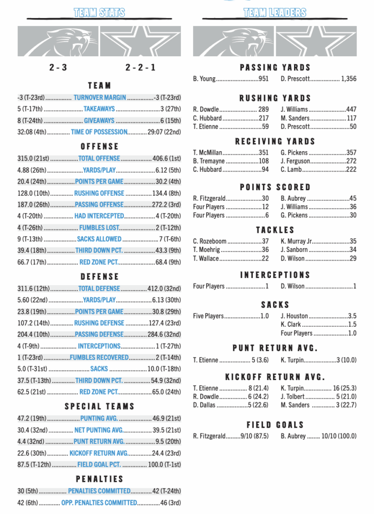 Largest DAL Margin:………. 23, CAR 10 vs. DAL 33 (11/19/23)