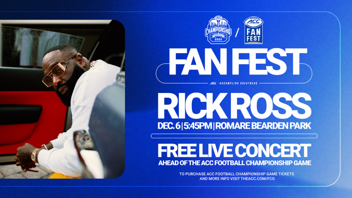 CHARLOTTE, N.C. (theACC.com) – Rapper and entrepreneur Rick Ross will perform at Fan Fest on Saturday, December 6, ahead of the 2025 ACC Football Championship Game. Ross, whose chart-topping hits include “Hustlin’”, “The Boss”, and “Stay Schemin’”, will take the stage at 5:45 p.m. ET at Romare Bearden Park, just a block away from Bank of America Stadium in Uptown Charlotte.