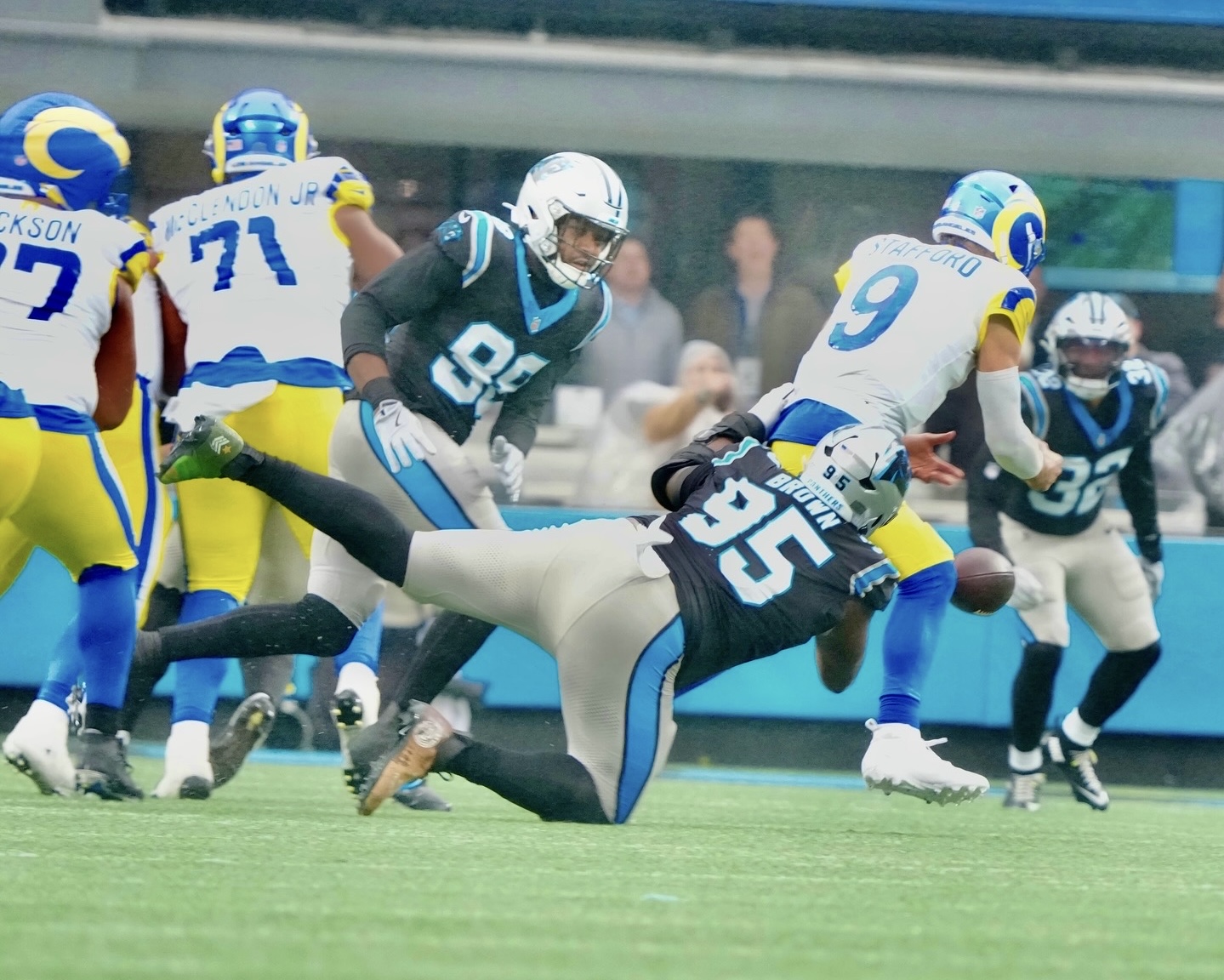 Carolina Panthers Derrick Brown & A’Shawn Robinson Describe Game-Saving Strip Sack (Video) Panthers defensive linemen Derrick Brown and A’Shawn Robinson describe Brown’s game-saving strip sack in 31-28 win over the Rams. View this post on Instagram Share This Previous ArticlePanthers Lean Into Their Identity In Week 13 Win Next ArticlePanthers Fans React to 31-28 Win Over Rams November 30, 2025