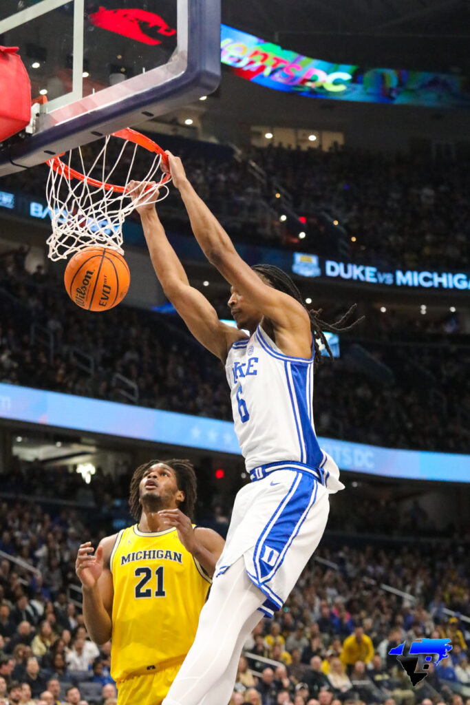 WASHINGTON, D.C. – The third-ranked Duke Blue Devils defeated the number one team in the nation, Michigan Wolverines, 68-63 in Capital One Arena Saturday night. Cameron Boozer nearly logged a triple double with 18 points, 10 rebounds, and 7 assists in the competition. Starters Isaiah Evans, Caleb Foster, and Patrick Ngongba II all added double-digit scoring to help the Blue Devils move past the Wolverines. Check out photos from the game.