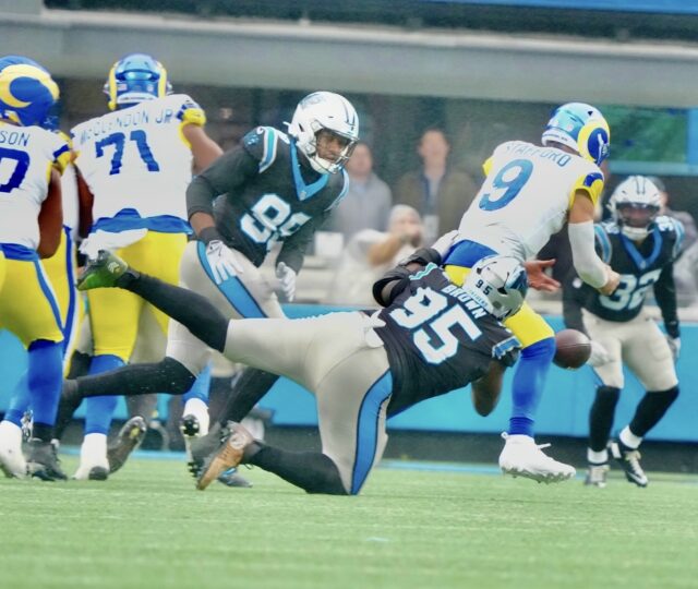 Panthers defensive linemen Derrick Brown and AāShawn Robinson describe Brownās game-saving strip sack in 31-28 win over the Rams.